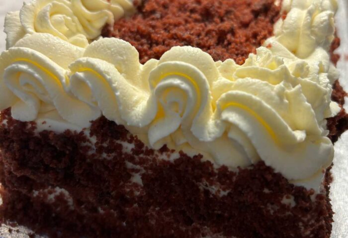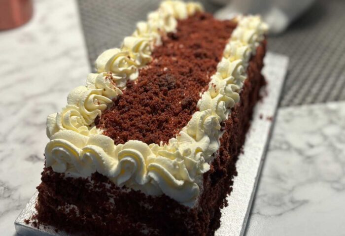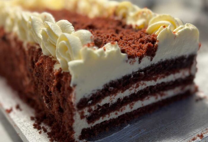 Soft crimson sponge, light cream cheese frosting, and a touch of cocoa, our Red Velvet Cake is classic luxury, redefined