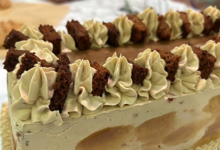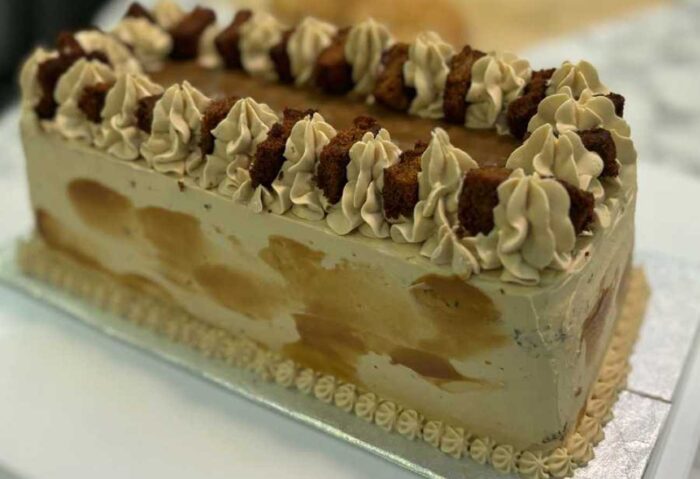 Our Sticky Toffee Cake is a rich and indulgent dessert that delights the senses. Made with moist, tender sponge soaked in a luscious toffee sauce, each bite melts in your mouth, offering a deep caramel flavour with hints of dates for a subtle sweetness. Topped with more toffee sauce and cream, this cake is the perfect comfort dessert, combining decadence with a heart-warming classic taste. Ideal for special occasions or a sweet treat any time!
